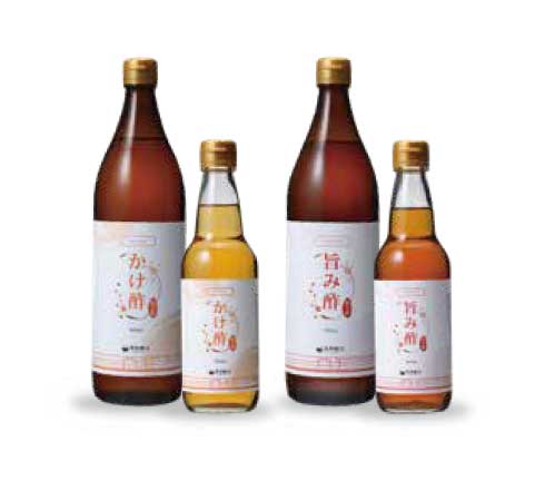 | かけ酢 | 結び酢に種子島産の粗糖と、沖縄県産の塩で、味付けをしたお酢です。そのまま、下ごしらえをした野菜や海藻、魚介類にかけて混ぜていただくだけで、美味しい酢の物ができる、スッキリとした味わいのお酢です。 |
